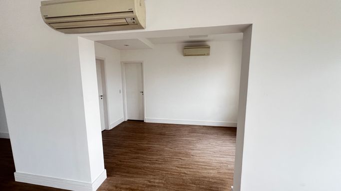 O apartamento conta com 3 suítes espaçosas, lavabo, cozinha planejada, despensa e dependência de serviço. A unidade recebe excelente iluminação natural e oferece uma vista livre e permanente para área de mata, garantindo privacidade e sensação de paz dentro da cidade.