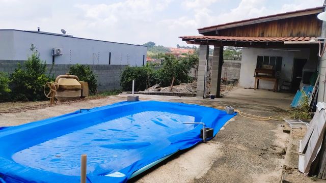 A área construída possui dois cômodos, banheiro, espaço gourmet com churrasqueira e uma piscina ideal para momentos de descanso e confraternização.