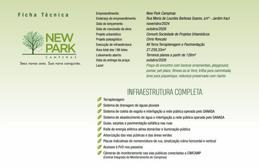 O New Park Campinas é um loteamento planejado para quem busca qualidade de vida, praticidade e bem-estar, com infraestrutura completa e espaços de lazer integrados ao verde.