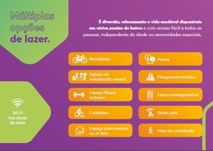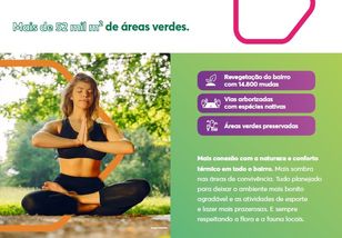 Bairro inteligente completo: Áreas de lazer com praças, espaços pet, academia ao ar livre, wi-fi nas praças, associação de moradores e 52 mil m² de áreas verdes.
